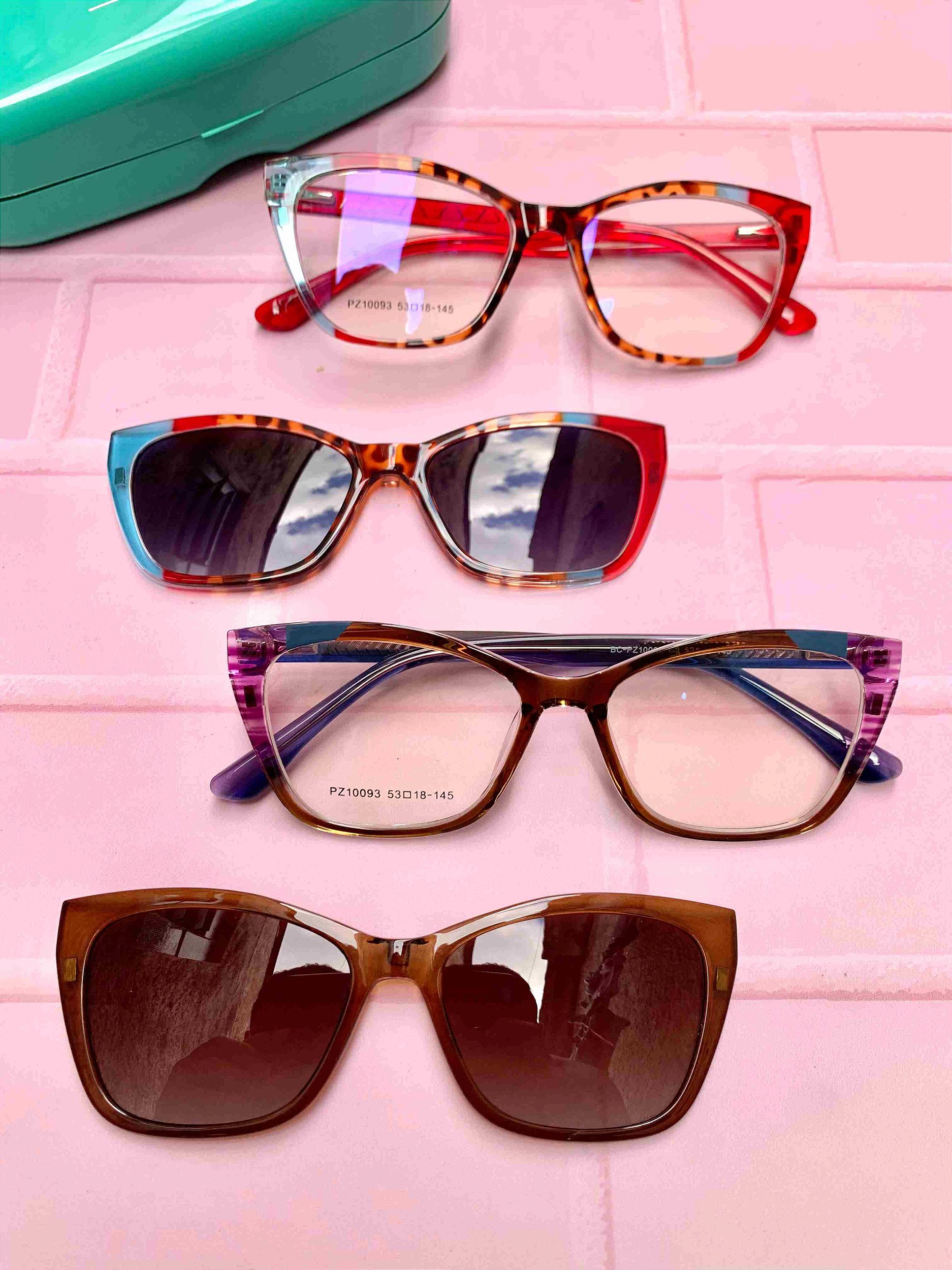 Nossa armação clipon Kiame é um óculos gatinho clipon feminino para quem gosta de armações autênticas, com cores vivas e alegres. É uma armação resistente e se torna um óculos de sol com grau super confortável quando é acoplada a lente adicional clip-on.
