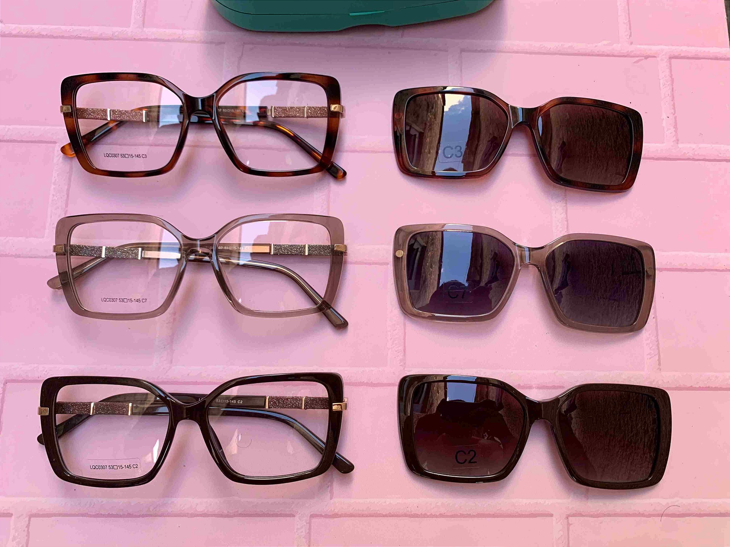Nossa armação clipon feminina Luanda é um modelo autêntico e moderno, com formato quadrado e tamanho médio. Um óculos que destaca e chama atenção por onde passa. Disponível nas cores marrom escuro, cinza ou marrom mais claro com desenho estampado tartaruga, encanta por seu detalhe brilhante nas hastes e o charme sem igual. Se torna um óculos de sol com grau super confortável quando é acoplada a lente adicional clip-on.