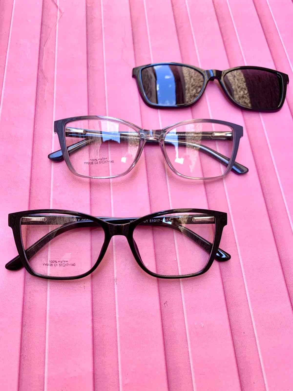Acompanha junto à armação a lente adicional solar com proteção UV que transforma seu óculos em um lindíssimo óculos de sol com grau, confortável e perfeito para dias ensolarados. A lente solar tem encaixe perfeito na armação e é presa por imãs e uma trava central.