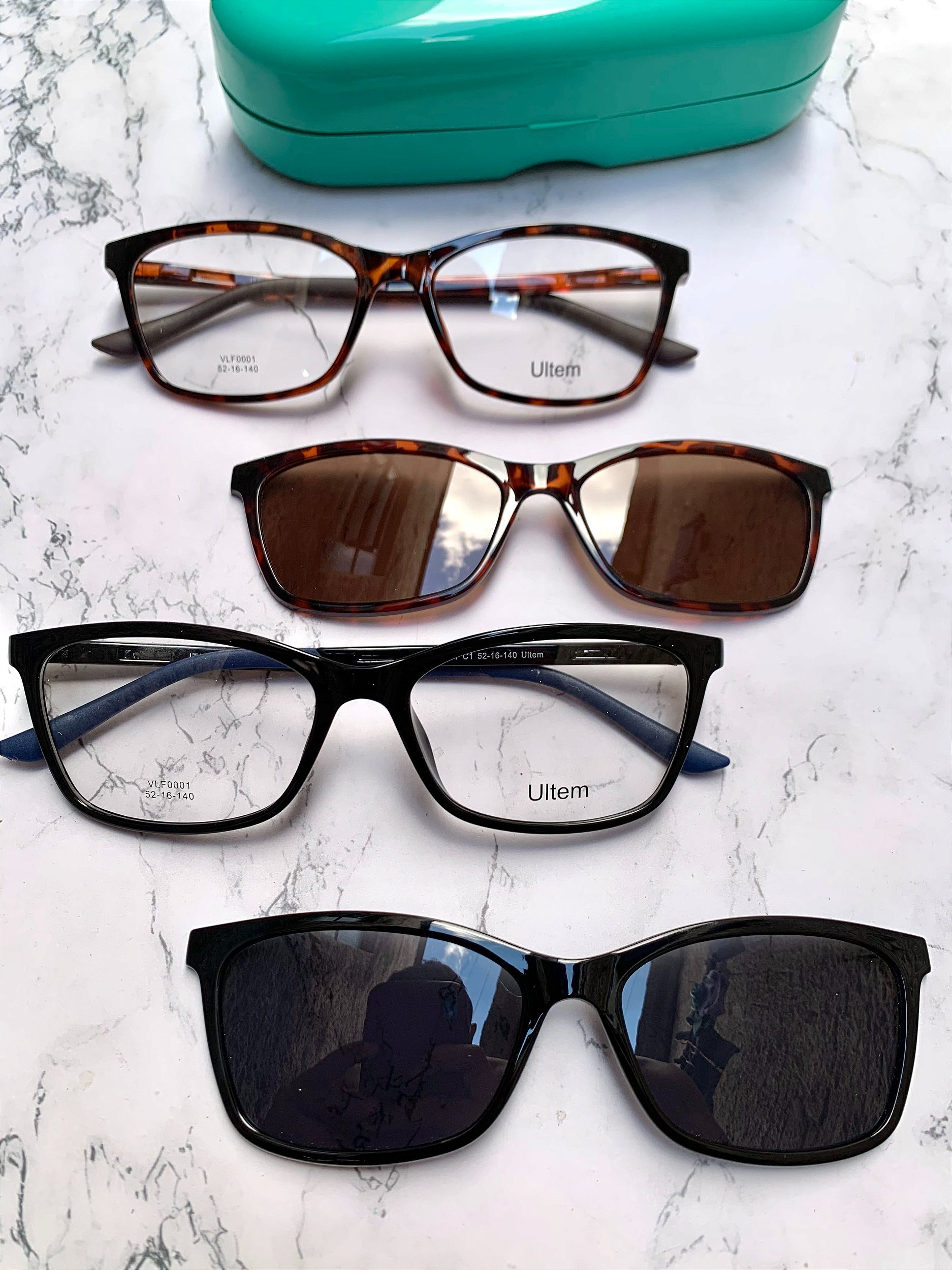 Armação leve, pequena e com lente solar clip-on adicional, que a transforma em um verdadeiro óculos de sol com grau
